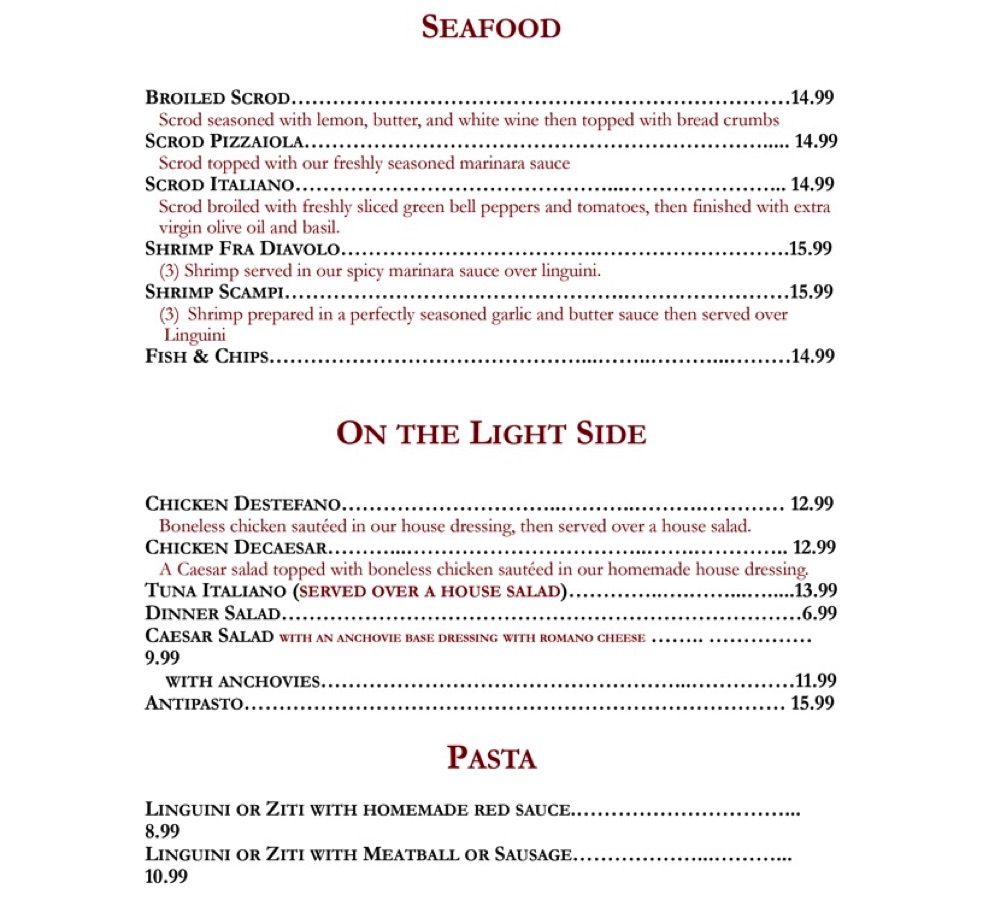 The information contained in this website is for general information purposes only. The information is provided by “Andino’s Italian Restaurant.” and whilst we endeavor to keep the information up-to-date and correct, we make no representations or warranties of any kind, express or implied, about the completeness, accuracy, reliability, suitability or availability with respect to the website or the information, products, services, or related graphics contained on the website for any purpose. Any reliance you place on such information is therefore strictly at your own risk.